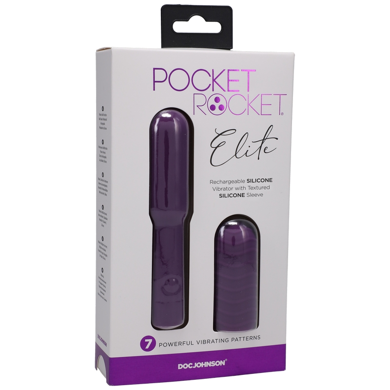 The Rechargeable Pocket Rocket Elite has all the features that made Doc Johnson’s Original Pocket Rocket an award-winning mainstay and more. It’s a discreet mini-vibe made of health-grade silicone. This sky blue Pocket Rocket Elite is rechargeable and comes with a textured silicone sleeve for extra sensations Strong, Quiet Motor Delivers Targeted Clitoral Pleasure Great for Solo or Partner Play 7 Powerful Vibrating Patterns Removable Textured Silicone Sleeve for Varied Sensations Compact Size for Discreet Pleasure on the Go Waterproof Rechargeable with included USB Cable Charges in 120 Minutes for 50 to 120 Minutes Use, Depending on Usage Speed Includes Fabric Bag for Discreet Storage and Travel