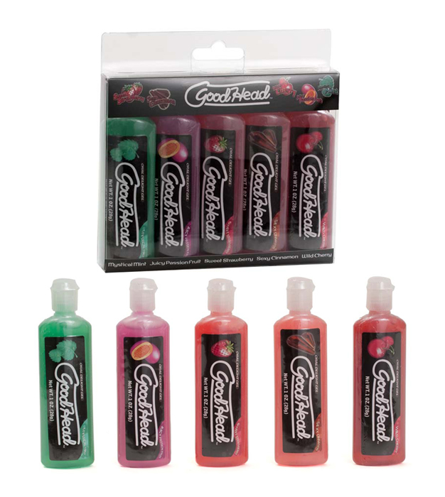 Just put your lips together and blow with Doc Johnson’s 5 pack of GoodHead gel. Try for yourself and see how this edible blow job enhancer turns foreplay into an unforgettable experience. Includes 1 oz. bottles of each flavor: Wild Cherry, Mystical Mint, Watermelon, Green Apple, and Sweet Strawberry. 1 oz. (28g) Travel-Friendly Bottles Enhances Flavor During Oral Sex Delicious Lickable Flavors Mild Cooling Sensation Freshens Breath Non-Sticky Water-Based Formula No Parabens or Sugar PETA-Certified, Cruelty-Free Proudly Made in America
