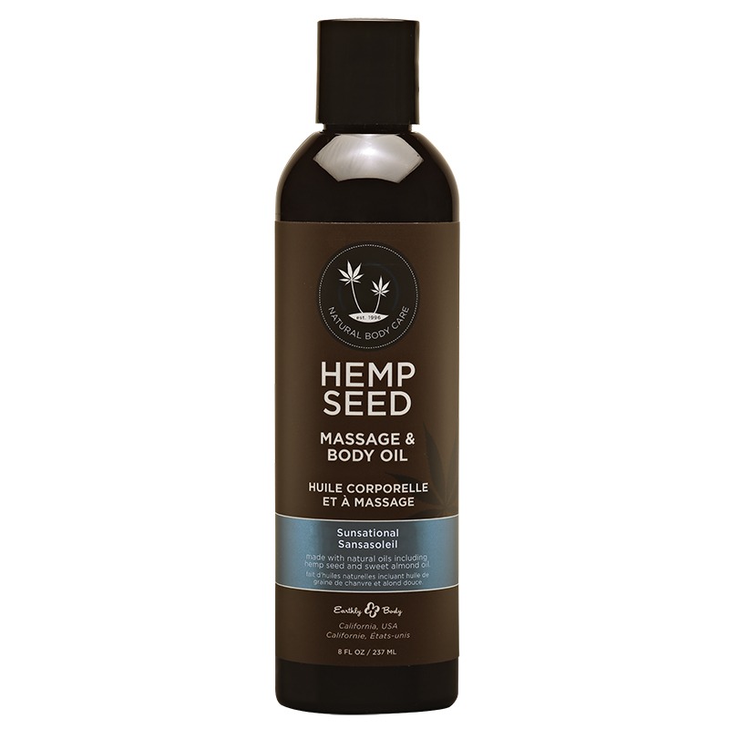 Don’t settle for a boring, bland massage oil when you can indulge with our Hemp Seed Massage Oil. It’s specially crafted with the finest of natural ingredients and provides superior slip without leaving a greasy residue. A 100% natural blend of skin oils (including hemp, almond, grapeseed, apricot and vitamin E) provides a slick, professional glide. Better yet, it absorbs into your skin for deep conditioning and moisturizing with no greasy residue. Whether you choose unscented or one of the exotic fragrances, you won’t need (or want) to wash it off. Hemp Seed, Vitamin E, Almond, Grapeseed, and more natural oils Penetrates and Moisturizes Professional Glide for massage therapists Residue-free Sunsational fragrance smells like bergamot and juniper berries.