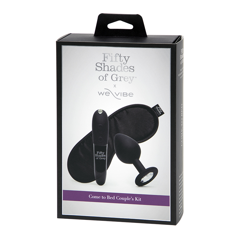 A trio of titillation for lovers of the Fifty Shades series, this kit enables couples to explore intimate pleasure – the ultimate companion for a sensual weekend getaway. Combining We-Vibe Tango X’s deep, rumbly vibrations with a velvety silicone butt plug and a soft blindfold to heighten sensations. The Come To Bed kit inspires erotic exploration worthy of Christian & Ana’s love story. 3-Piece Pleasure Kit Featuring a special edition, best-selling We-Vibe Tango X bullet vibrator, a crystal butt plug and a satin blindfold. Official Pleasure Collection Fifty Shades of Grey logo printed on all components within the kit and the recycled ocean plastic storage bag it comes with. Smooth Black Silicone Ultra-hygienic and friendly on skin, this special edition midnight black silicone is perfect for creating your own dark fantasy. We-Vibe Tango X Sleek silicone bullet vibrator with 7 vibration modes and 8 intensity levels for tailored pleasure sessions. Waterproof and rechargeable, Tango X also has a travel lock for discretion during your journey. Crystal Butt Plug Contoured to fit the body’s curves for satisfying anal stimulation, this smooth silicone toy slips in easily while providing another dimension of pleasure that both partners can enjoy. Satin Blindfold Effectively blocks vision to heighten senses, the blindfold is sleek to the touch with light padding for comfortable wear throughout your play session.