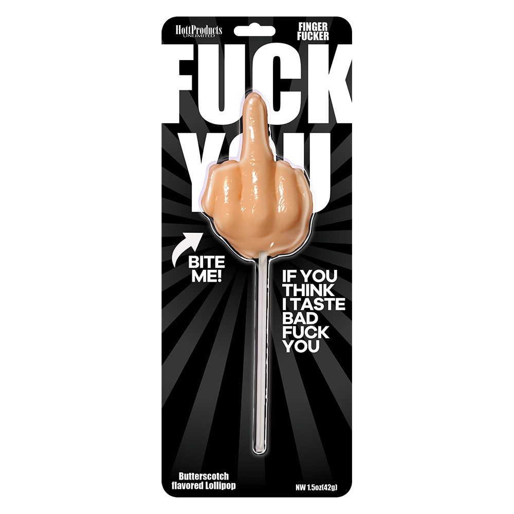 Butterscotch flavored Lollipop. Giving you the “Finger”. Features: – The Finger – Butterscotch – Great Taste
