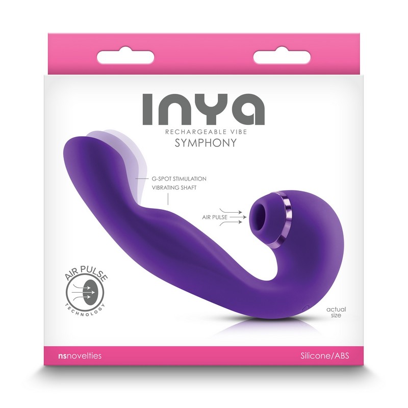 Symphony by INYA – A multifunctional contoured vibrator featuring three motors providing powerful g spot vibrations while sensually stimulating the clitoris with exciting air pulse technology. Water resistant and Rechargeable. Suitable with all lubricants. Made of platinum grade silicone.