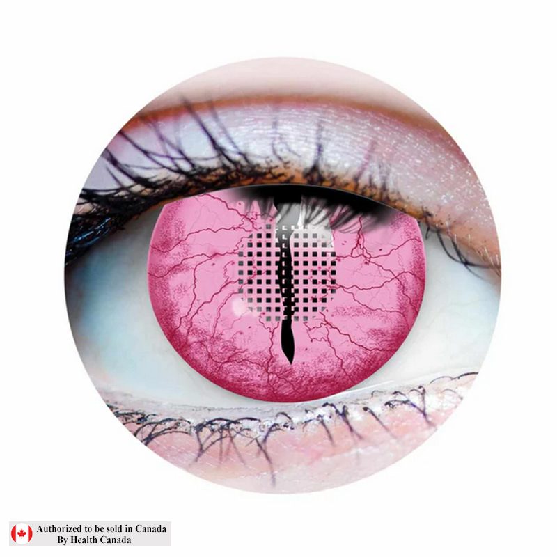 Channel the terrifying persona of Nezuko’s awakened demon form with these SLAYER colored contact lenses and strike fear into the hearts of all those who meet your gaze. Matching outfits and accessories are nice, but what really sets you apart from hundreds of other cosplayers is your piercing pink eyes. The SLAYER lens design features a light pink background with a darker pink vein effect overlay, which illuminates and meets at the outer ring of the lens. The pupil is fully hidden under a see-through mesh. A black line in the middle of the lens gives a demonic effect, making it perfect for cosplaying characters from popular anime series. Vision is slightly obstructed, so it is recommended that it be used only for photos or in situations where obstructed vision will not interfere with performance.