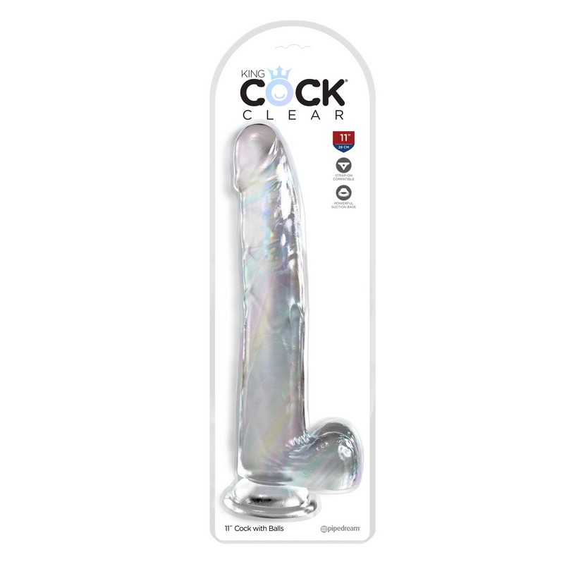 The Choice is Clear! The King Cock Clear 11 in. Dildo combines a translucent dildo with a realistic cock design: flexible shaft, detailed veins, and defined head. The powerful suction cup base sticks to nearly any flat surface and makes every dildo harness compatible. Created to heighten your pleasure experience, this specially crafted formula is virtually odorless, non-sticky, and easy to clean. – Incredibly Pure, Translucent Material – Lifelike Design – Powerful Suction Cup – Harness Compatible
