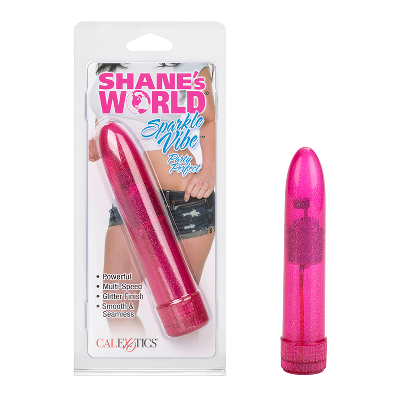 Why not add a little sparkle and shimmer to your ordinary orgasms? The Shane’s World Sparkle Vibe is a powerful, compact, and party-perfect vibrator with multiple speed action that provides intense pleasure to please you. This sparkling, feminine little sex toy is wonderfully smooth and seamless for all-over pleasure on your lips, clit, or G-spot. It’s a silky smooth adult toy that’s perfect for a solo party or a night of adventure (and plenty of powerful orgasms) with a partner. It’s 4.5 inches long and 1 inch wide, so it can fill you up and hit those deep and sensitive spots just as well as it can cover every inch of your lips for waves of exciting pleasure. This perfect beginner vibrator is finished with shimmery glitter and designed for any kind of fun you can dream up. Turn up the vibrations on this deceptively powerful but totally discreet little vibe to really get the party going. Your pleasure is totally in your hands with this personal massager-just keep dialing up the power on the base of the vibe until you find the speed that sends you over the edge. It is easy to use: Just twist the battery compartment at the base open, slip in a single AA battery, and close the compartment securely before blasting off into some seriously awesome orgasms. Get ready to party with the Shane’s World Sparkle Vibe.