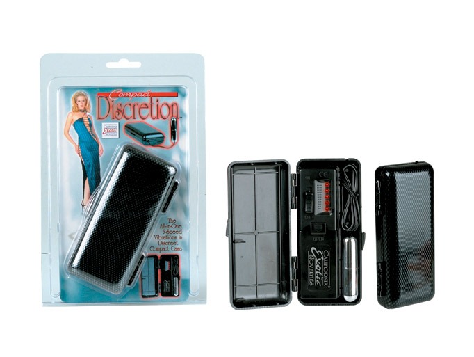 Discreet, all-in-one, 5-speed, slim, silver, vibrating stimulator with LED indicator. All in a compact travel case. 2 AA batteries.