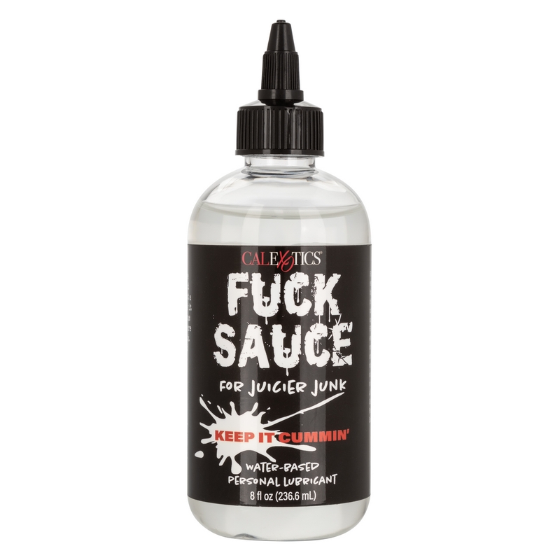 Everything is better with sauce on it and the Fuck SauceTM Water Based Lubricant is sure to have you coming back for more. The premium water-based formula is sure to enhance natural lubricant and provide the very best glide. Keep playtime going as long as you can with the super-slick formulation for a naturally moisturizing and long-lasting effect. Expertly created by the sexual health experts at CalExotics, the water-based formula is hypoallergenic, pH-friendly, safe for all skin types, and free from artificial fragrances and colorants. Made in the USA. How to Use: Use as needed to enhance intimacy and lubricate pleasure. Apply a small amount of water-based lube to desired area to lubricate, reapply as needed. Easily washes away with warm water.