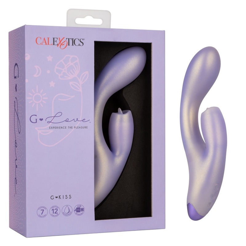 The gorgeous G-LoveTM G-Kiss is a dual stimulating massager with vibrating shaft and flickering tongue-like teaser. Love yourself just right with the flexible G shaft, 7 independent functions of flickering action and 12 independent functions of vibrations. The flickering teaser tip and sensually curved shaft are perfect for teasing internal and external sweet spots. For an ultra smooth surface and flexible body, the curved stimulator and massager are covered in a shimmering Silicone This silky smooth vibrator is packed with 12 functions of vibration and 7 independent functions of flickering stimulation made just for you. The easy-touch control buttons let you effortlessly flicker through each function of vibration, while increasing or decreasing the function intensity. Whether you’re taking a dip with a lover or indulging in a steamy solo session, look forward to up to 55 minutes of waterproof vibration. Recharge pleasure and get back to playtime in only 2 hours with the provided USB cable. The flexible massager is made from a hygienically superior silicone. This body safe material is unscented and phthalate free to keep your most sensitive spots happy and healthy. Dual stimulating massager with vibrating shaft and flickering tongue teaser 7 functions of independent flickering action in the stimulator 12 functions of independent vibration, pulsation and escalation in the shaft Luxurious body safe Silicone with shimmering accents Flexible shaft that moves with you State-of-the-art memory chip resumes on last function used Easy push-button control – hold for 3 seconds to turn on or off USB rechargeable – charging cord included Complete charge in 2 hours Runs for 40 minutes on high speed and 55 minutes on low speed