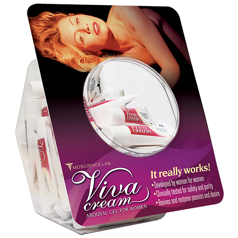 Viva Cream… Finally a product created for womenby women. Viva Cream Whether 18 or 80, women are seeking ways to enrich their life and bring more passion and intimacy into their relationships. Studies show up to 50%of women will experience a sexual dysfunction in their life and that the majority of women do not achieve orgasm from intercourse alone. If orgasm is achieved, it is most often due to clitoral stimulation. Now, with Viva Cream, sensitivity and intimacy may be heightened and a new rich orgasmic sex life is possible. Viva Cream is a unique combination of herbal extracts, vitamins, and amino acids in a clear, non-sticky gel. Each ingredient has been chosen for its proven effects on the sensitive tissues of women. Using Viva Cream may stimulate and potentiate a woman’s desire, aiding in intensifying arousal. Viva Cream is made for the demands of every woman who wants more. Apply a pearl-size amount directly to clitoris, gently rubbing the cream into the clitroris and the area directly on the underside. A warm, tingling sensation indicates efftect. Additional applications may be necessary. Ingredients: Propylene Glycol, Cetyl Hydroxethylcellulose, Water, Tromethamine, Menthol, Niacin, Mentha Piperita (Peppermint) Oil, Methylparaben, Arginine