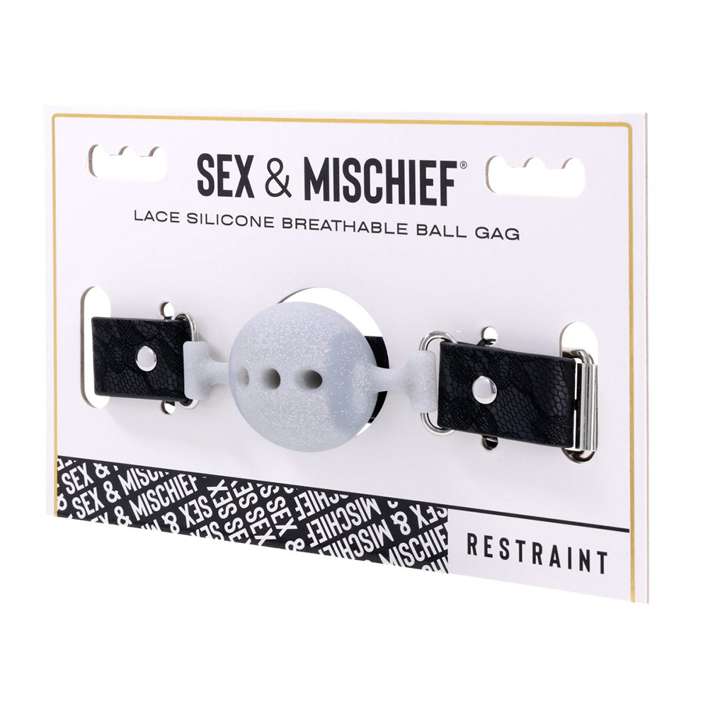 Where silence becomes a sensual surrender. Designed for both comfort and control, the Lace Silicone Breathable Ball Gag features a punctured ball that lets your partner gasp and whimper while indulging in the thrill of restrained pleasure. Lace-etched faux leather straps add a touch of seductive allure, combining elegance with playful resistance. Ideal for extended play, the ventilated design ensures lasting comfort while keeping them entirely at your mercy. The buckle closure secures the fit, allowing your naughty submissive to stay exactly where you want them. Features: – 1.75″ (4.45cm) breathable silicone ball gag – Lace-etched faux leather straps for a sophisticated and sensual look – Buckle closure to effortlessly secure and restrain