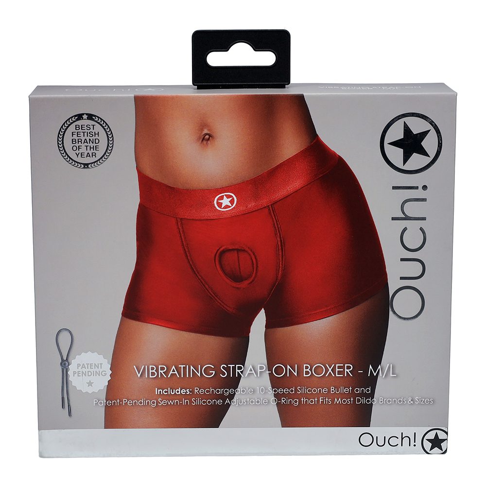 The Vibrating Strap-on Boxer’s stylish design fits longer down the thigh. Simple yet elegant, these strap-on panties are perfect for you and your partner. Don’t worry about complicated straps and buckles, just slip them on, add the toy and enjoy. With a variety of styles, shapes & sizes, everyone will find their perfect fit. With the patent-pending O-Ring System, almost all dildos and dongs will fit into this strap-on panty without the need of additional O-Rings. Each panty comes with a premium quality silicone rechargeable 10-speed vibrating bullet for extra sensations for you and your partner. Made of high-quality elastic compression material for a better fit, comfort & performance. The lightweight breathable fabric will draw away moisture from the body ensuring that when things get hot, you stay cool. Perfect for Packing, Pegging & Penetration. 1-year warranty. Pairs perfectly with All Ouch! & RealRock Dildo’s & Dongs. Hand wash or hand wash programme, do not tumble dry, do not iron, do not bleach, do not dry clean, line dry